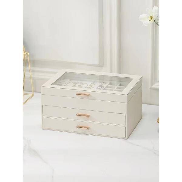 Metal Leatherette Light Blue Jewelry Cases Durable Jewelry Box With Window Images |